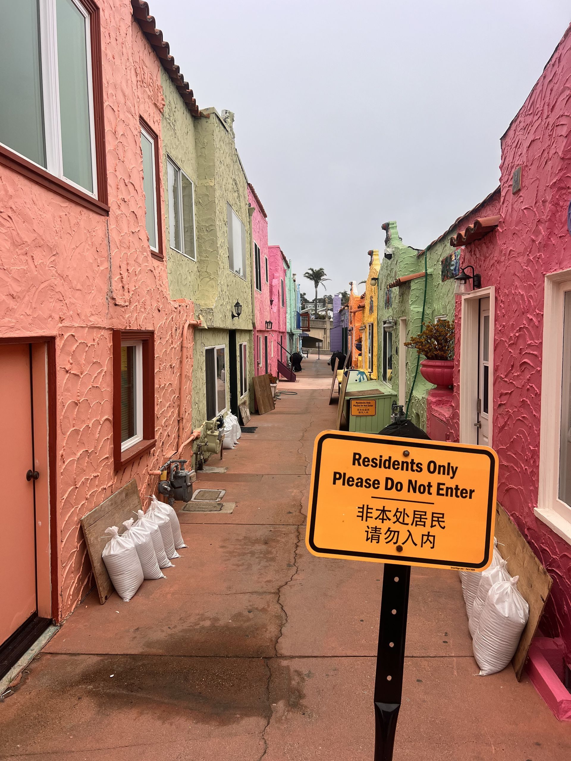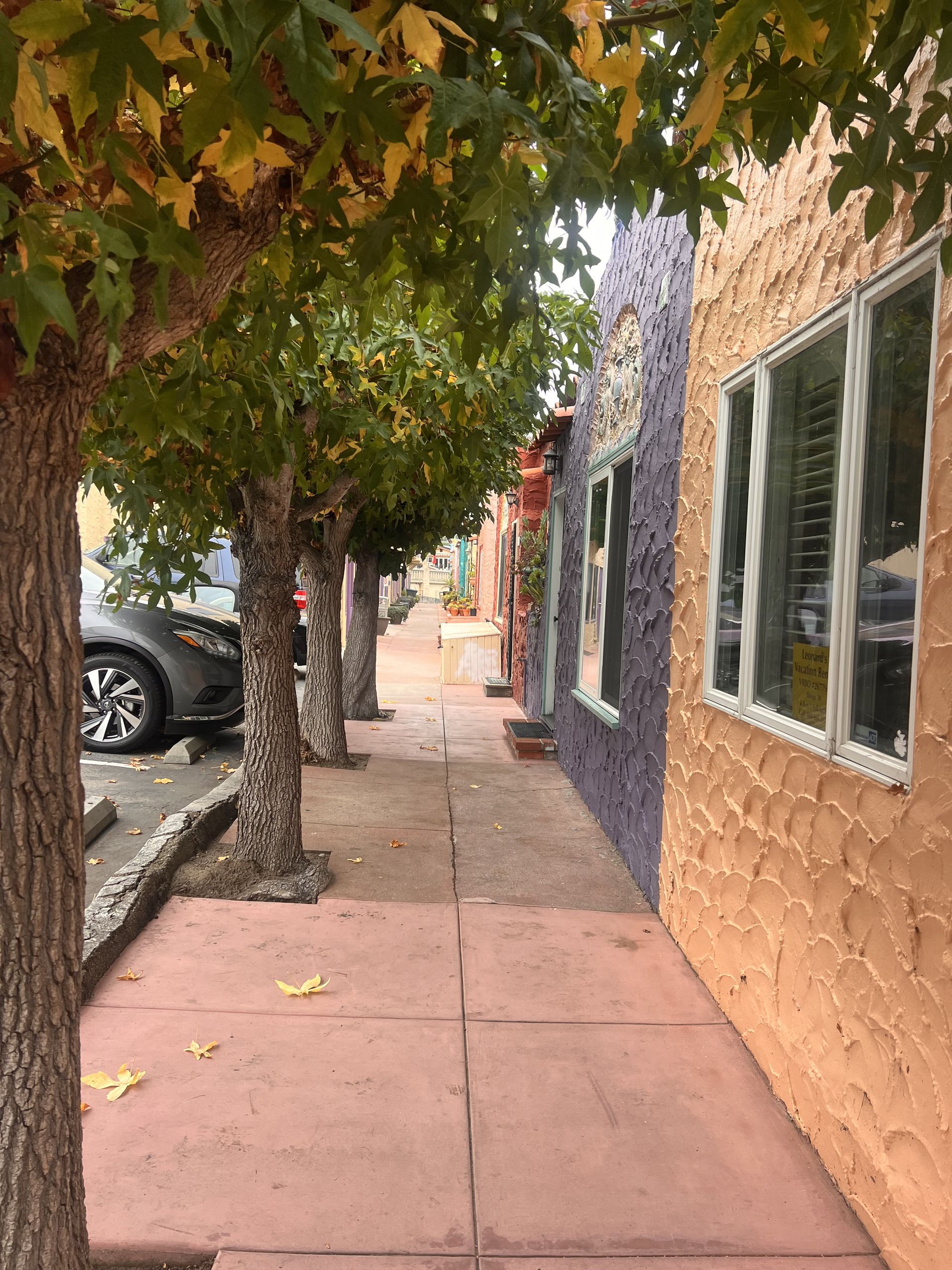 Follow the sidewalk facing the parking lot, towards the middle of the units.