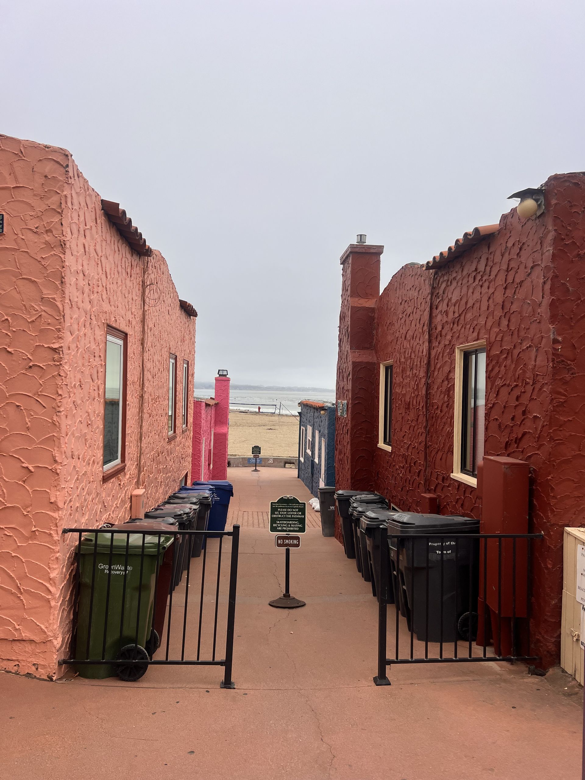 Proceed down the center walkway, you'll see the garbage cans.